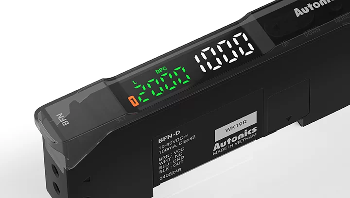Bộ khuếch đại cảm biến sợi quang điều chỉnh phạm vi phát hiện, hiển thị kép. Bộ khuếch đại sợi quang BFN series có các model hiển thị hiệu suất cao/tiêu chuẩn và các model cơ bản có thể điều chỉnh phạm vi phát hiện, phù hợp với nhiều môi trường khác nhau. Bộ khuếch đại sợi quang nổi bật với khả năng phát hiện ổn định, tốc độ đáp ứng nhanh lên đến 25 μs và cường độ ánh sáng mạnh, ngay cả đối với các đối tượng chuyển động tốc độ cao.